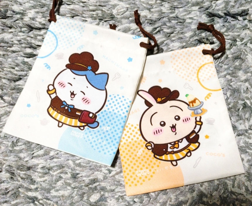 ミニ巾着 思ってたよりも小さい(笑) 私→うさぎ推し旦那→ハチワレ推し行く前から推しがきたら嬉しいけど、コラボ付きは(キリが無いから)1注文ずつにしようねって決めててこれ😭持ってきてくれた店員さんありがとう🙏🏼